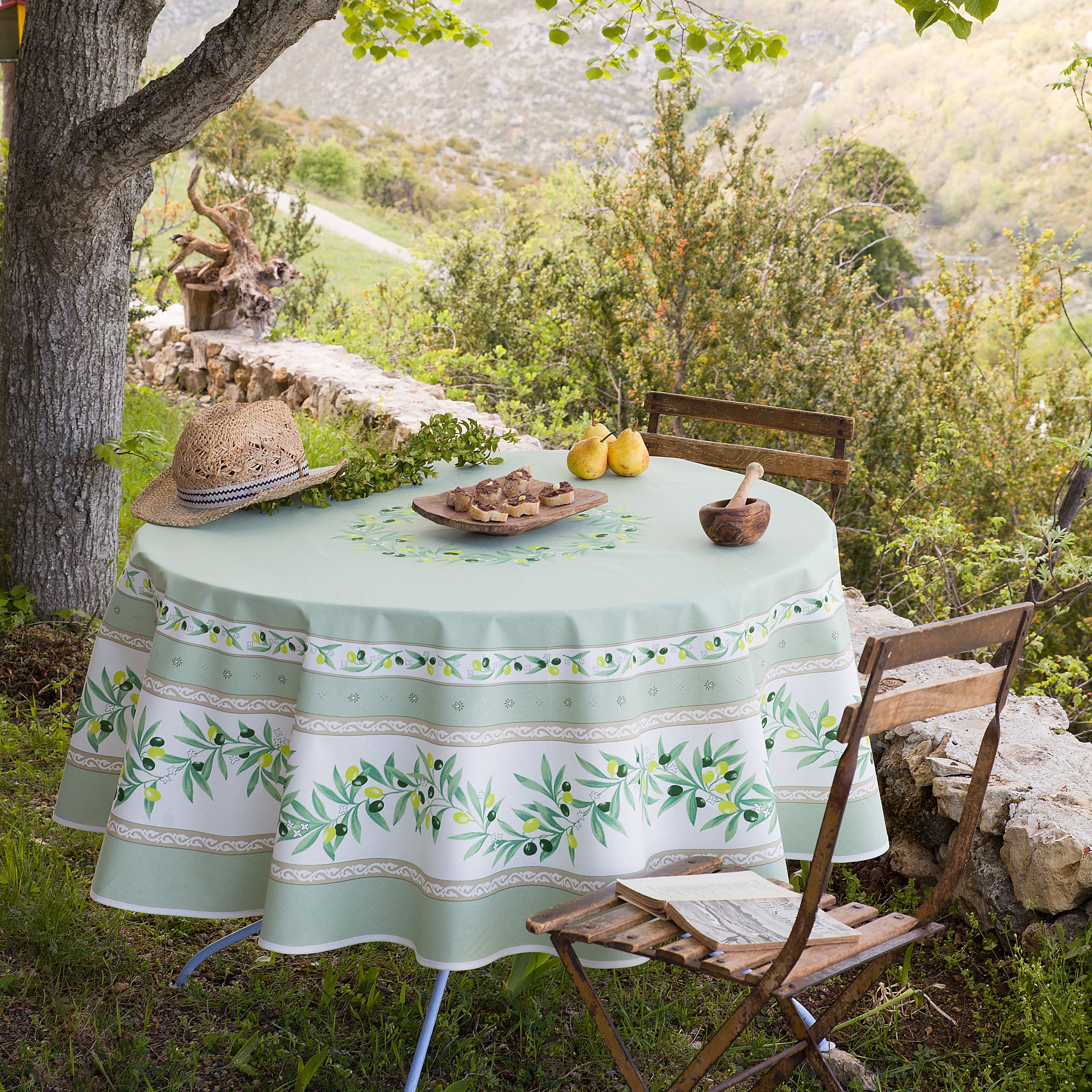 オリーブとラベンダーのデザインが可愛くて大満足です。円形のテーブルクロスを探していましたが、なかなか見つからず、今回購入出来て嬉しいです。南フランスらしい爽やかで明るい感じがして、家で過ごす時間が楽しみになりました。