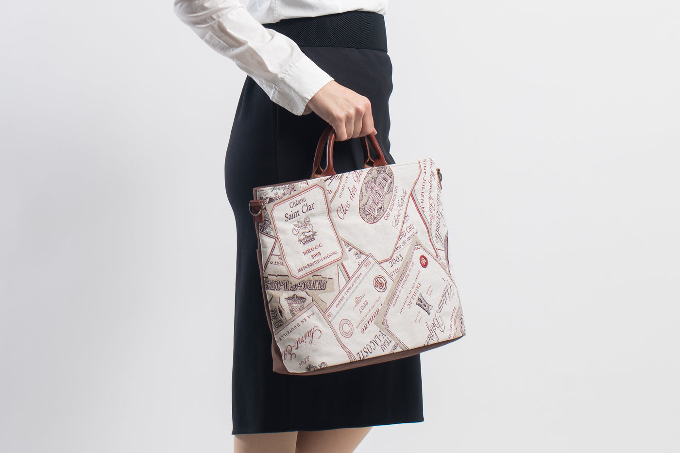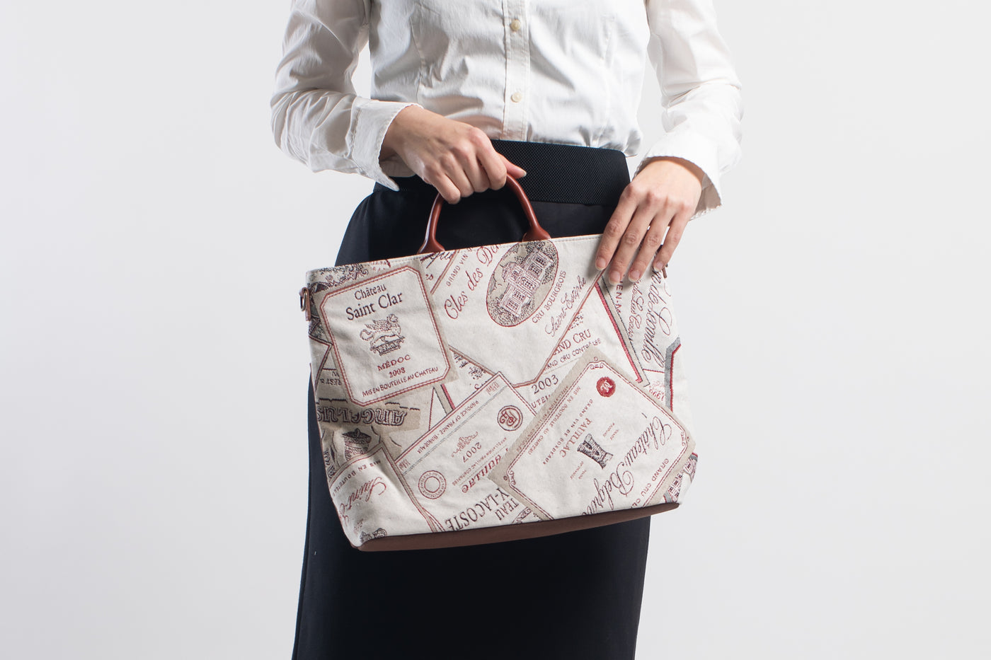 플라워 (뒷면 카키) 표지:삼 별포:면 안감:레이온 손잡이:소가죽 에펠탑(후면 검정) 표지:면 60%폴리에스텔 40% 별포:면 안감:레이온 손잡이:소가죽