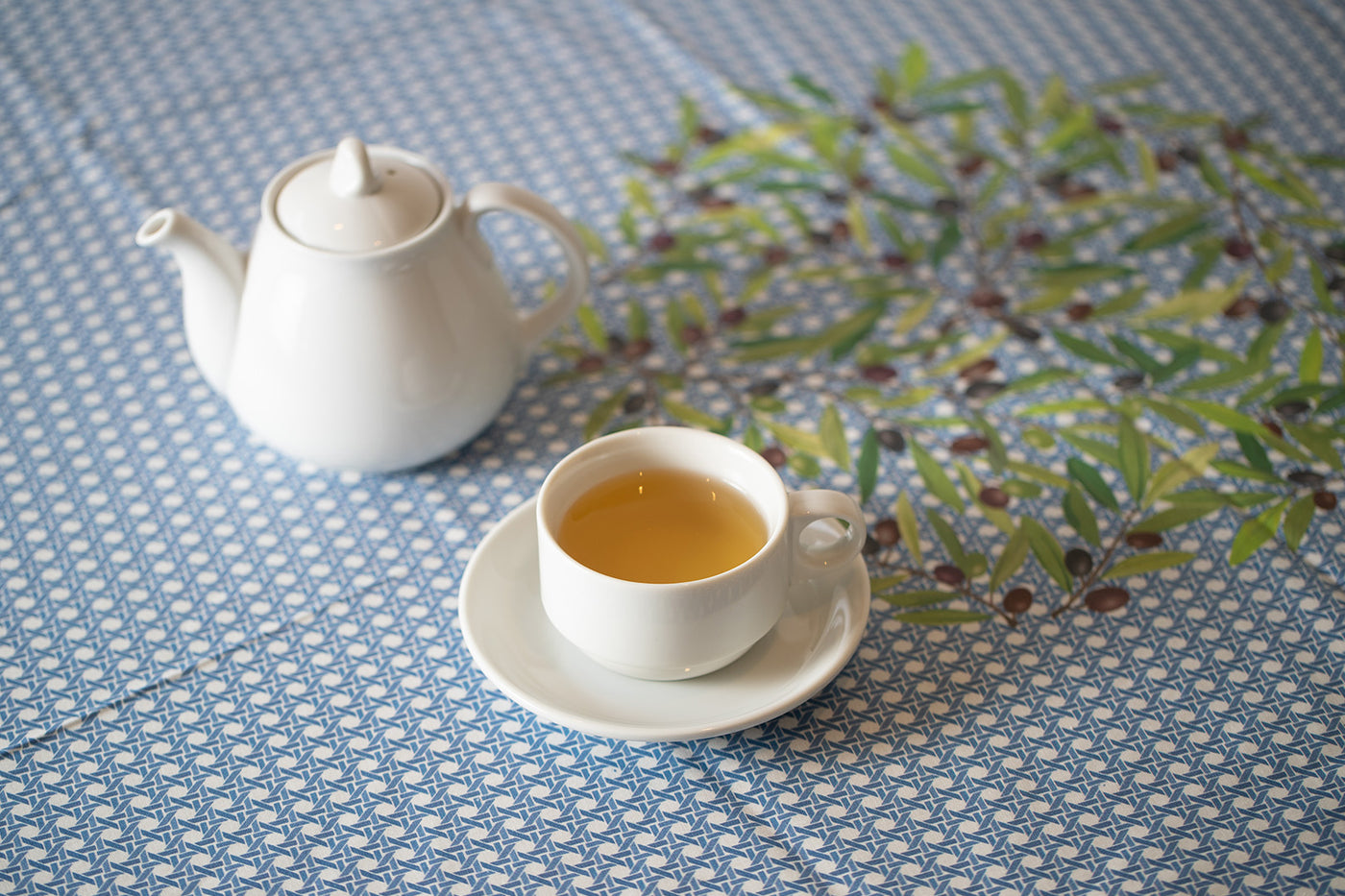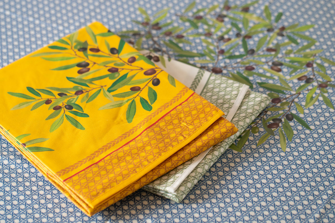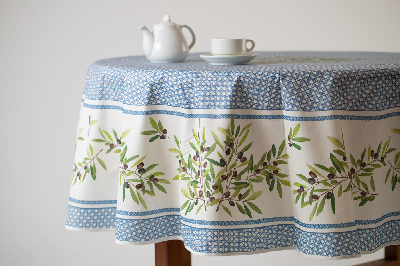 올리브 무늬가 내츄럴한 분위기의 식탁보.