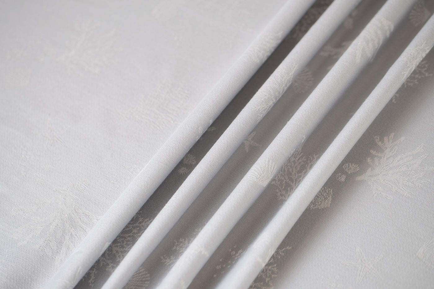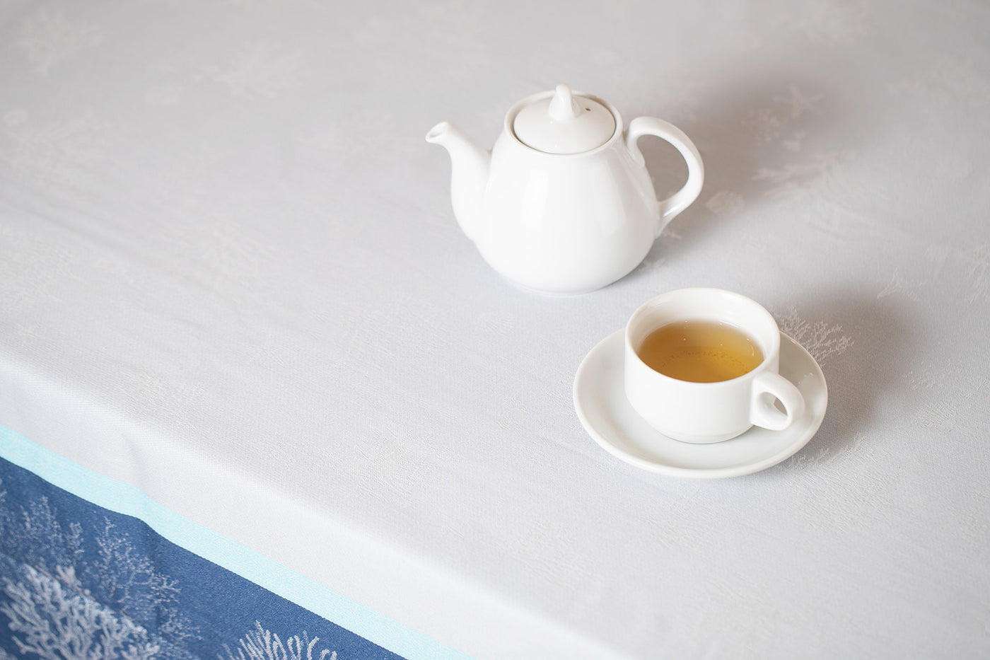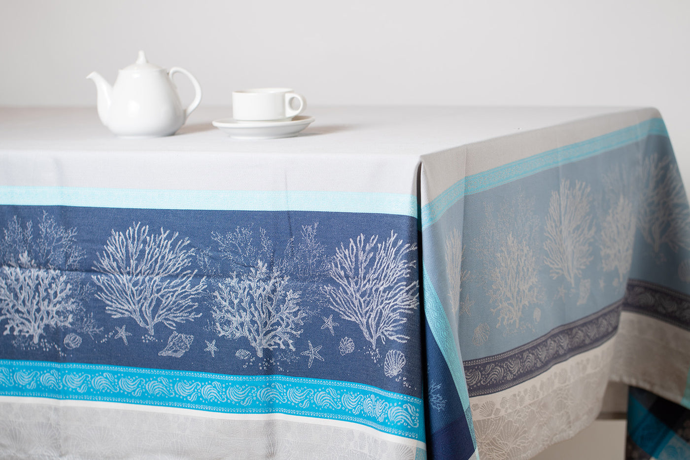 산호와 조개, 불가사리 등 바다의 모티브가 디자인 된 식탁보.