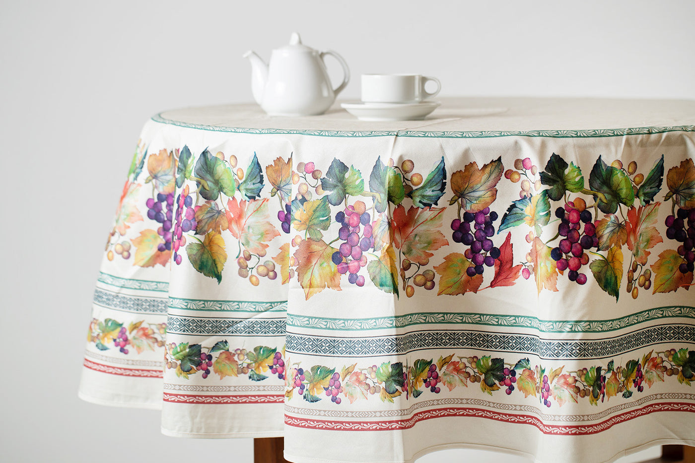 차분한 포도 무늬가 어른스러운 느낌의 식탁보.