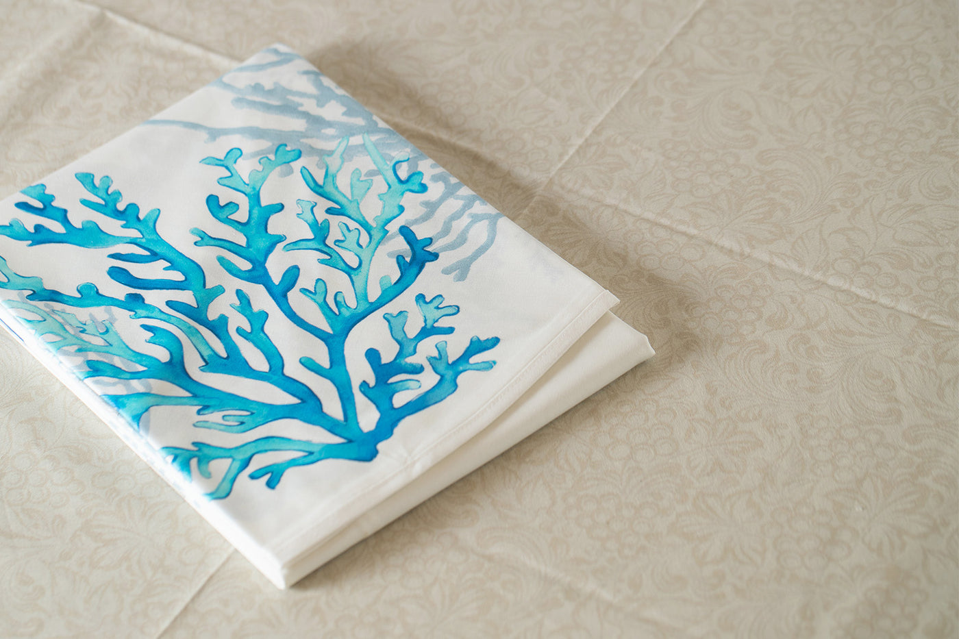 원단에 아크릴 코팅이되어 있기 때문에 식기가 미끄러지기 어렵고 안정감이 있습니다.