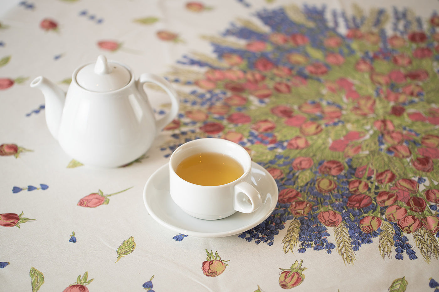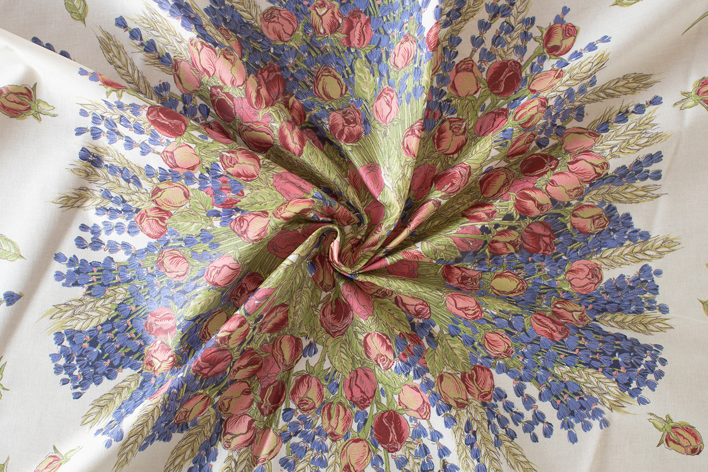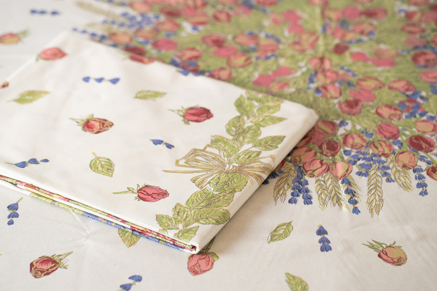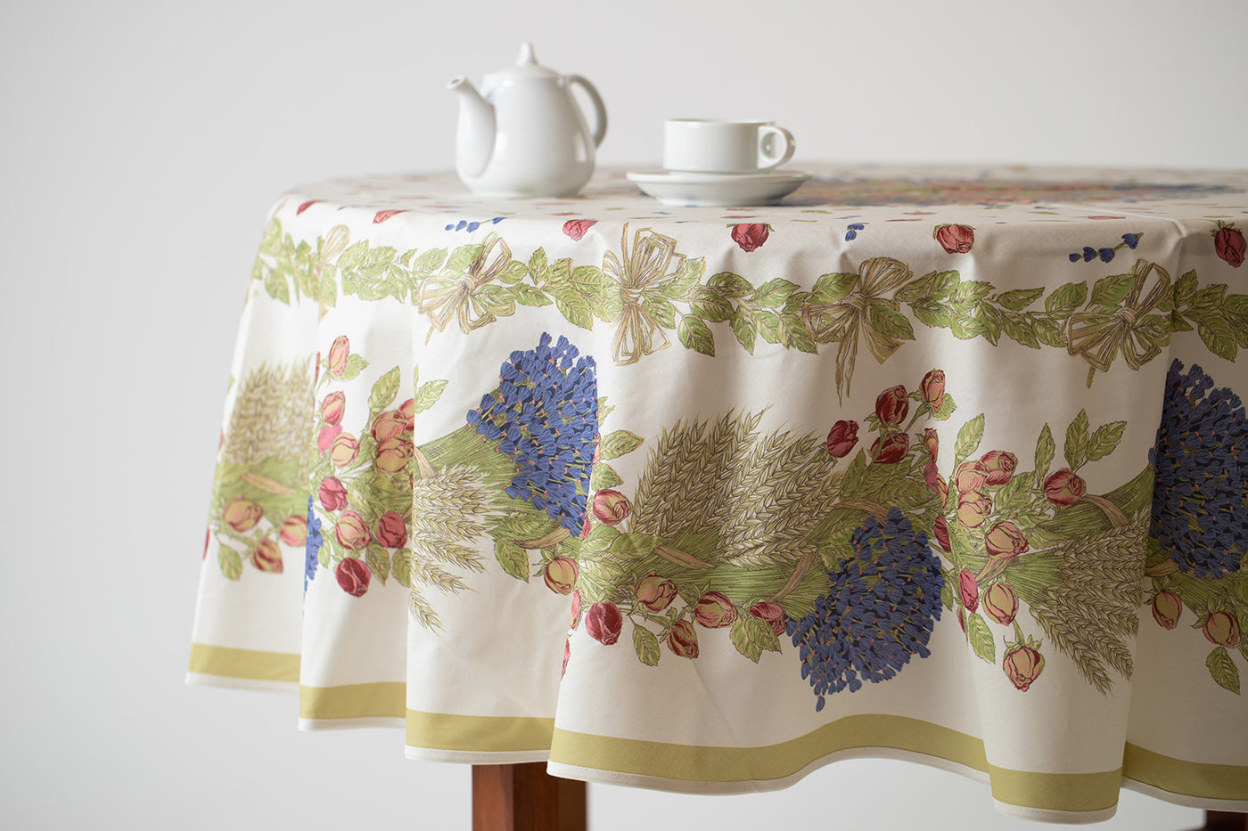 로즈와 라벤더의 꽃다발 디자인이 멋진 식탁보.