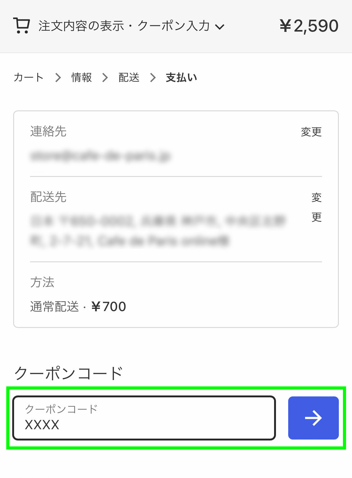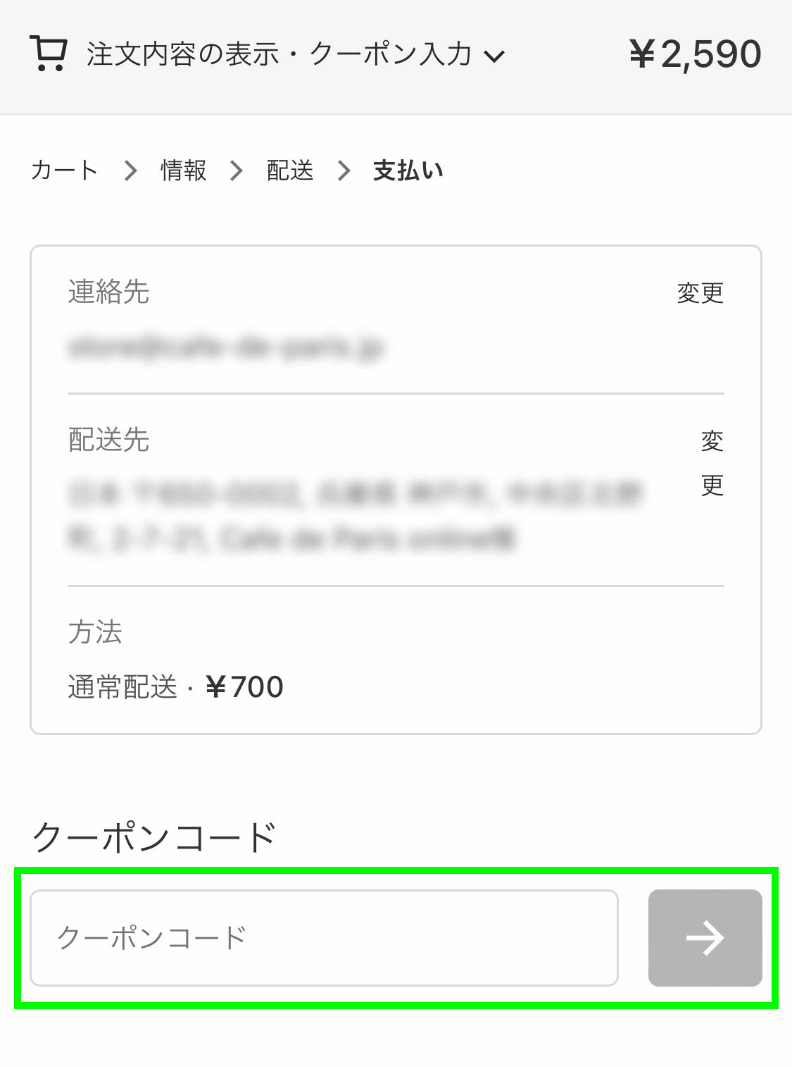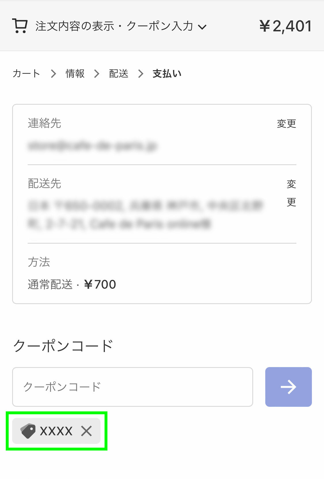 クーポンが適用されているかどうかをご確認ください