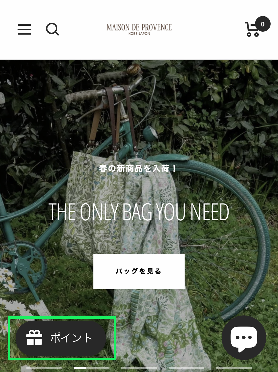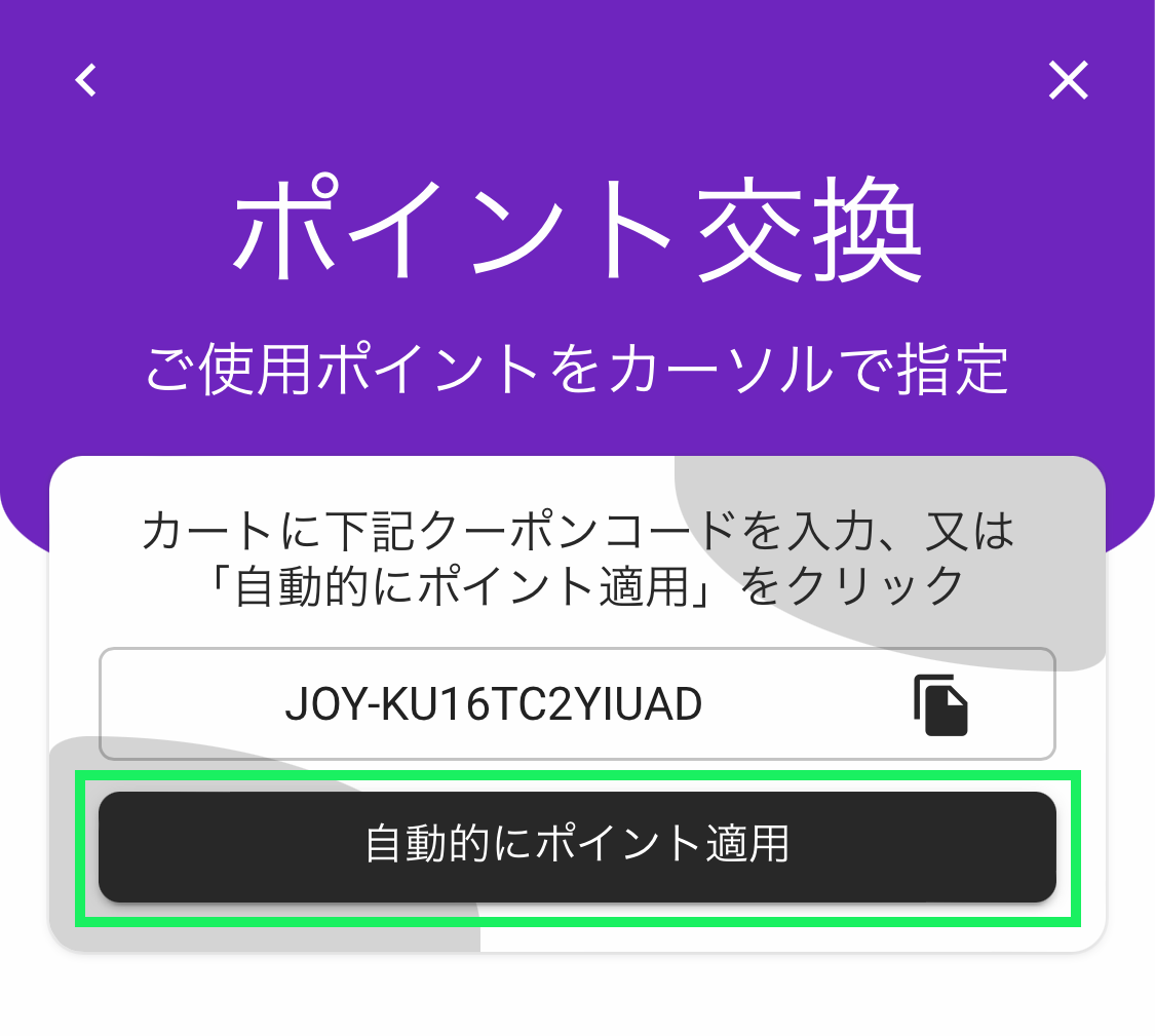 ※カートに何も入っていない場合は、新たに商品をカートに入れた時に自動的にポイント(クーポンコード)が表示されます。