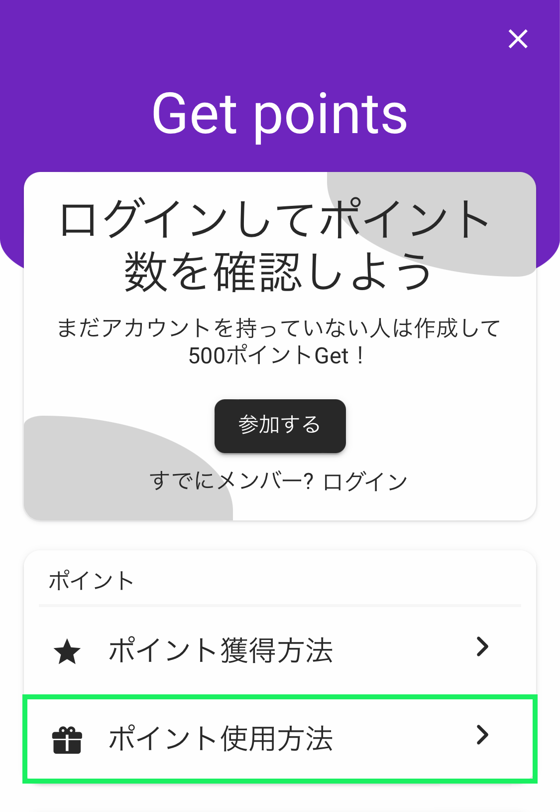 ご使用ポイントをカーソルで指定・ポイントを使うをクリック