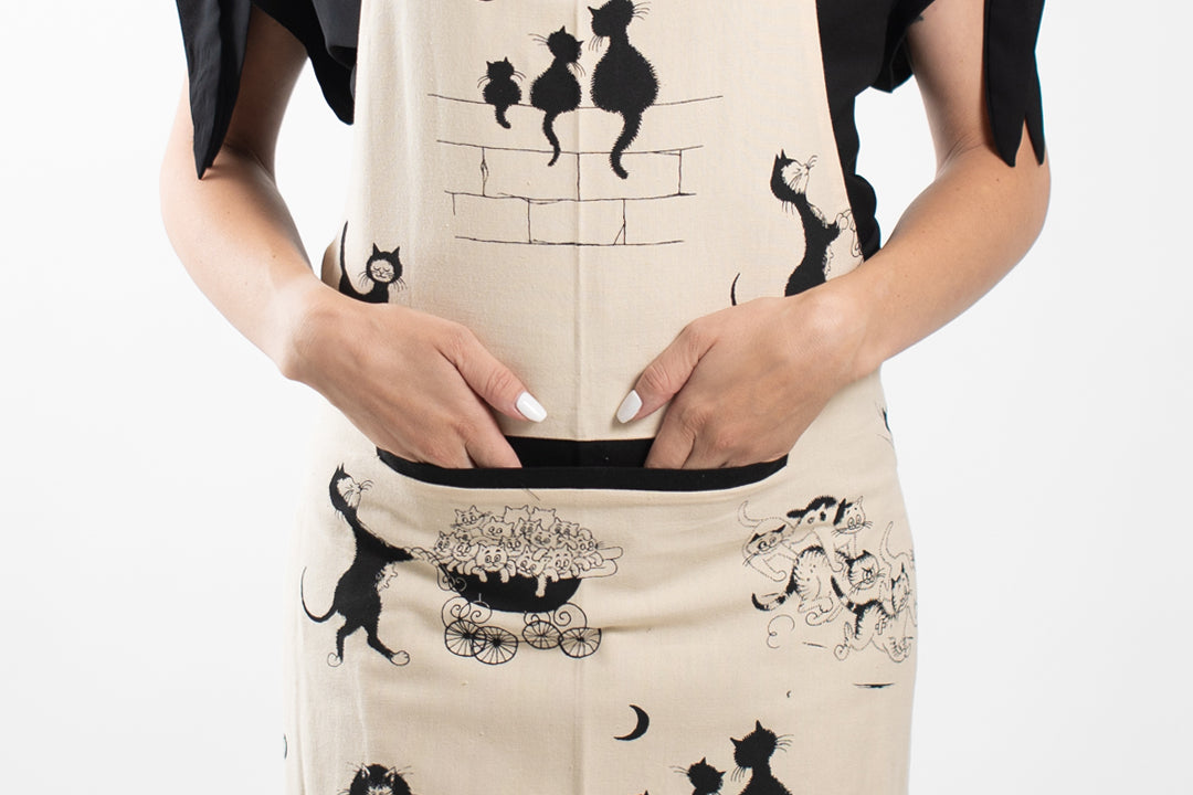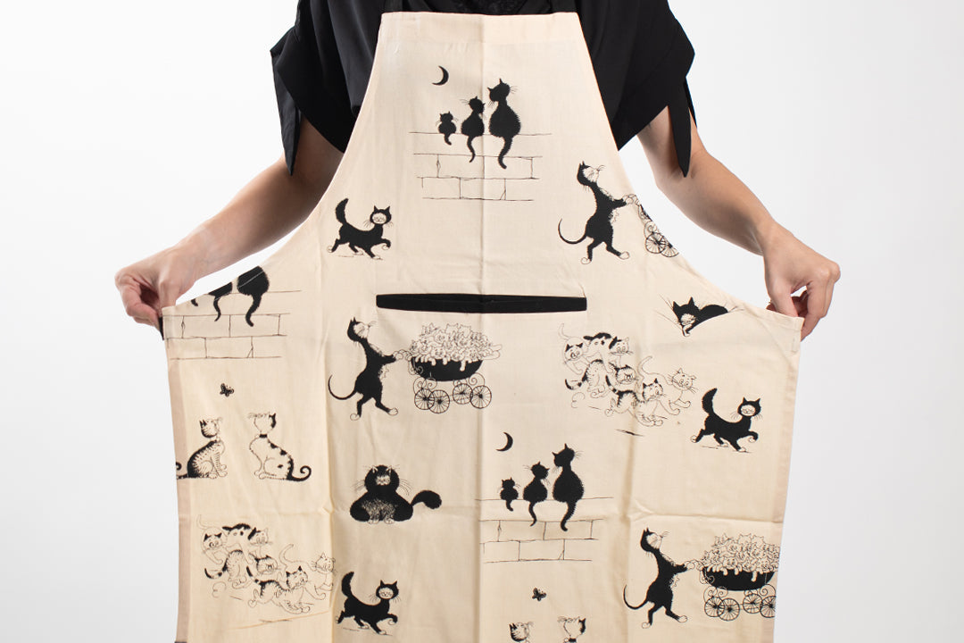 モノトーンがシックでお洒落な黒猫のエプロン。