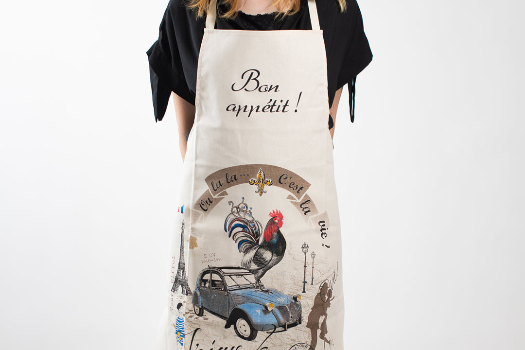 南フランスらしいデザインのものや、エッフェル塔デザインのものなど、フランス好きにはたまらないデザインが目白押し。その日の気分で使い分けるのもおすすめ!お料理が楽しくなるエプロンです。