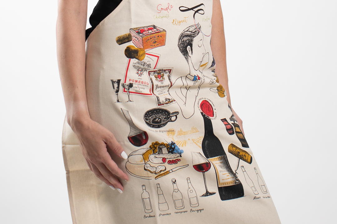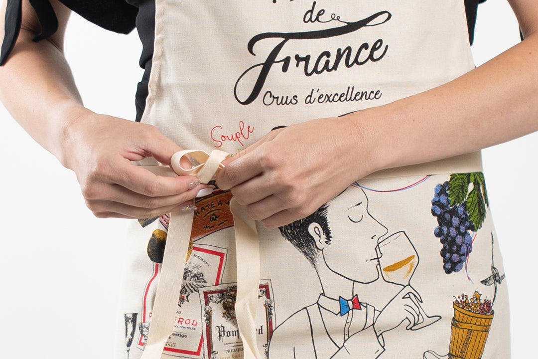 エッフェル塔やワインのデザインなど、フランス好きにはたまらないイラストのエプロン。