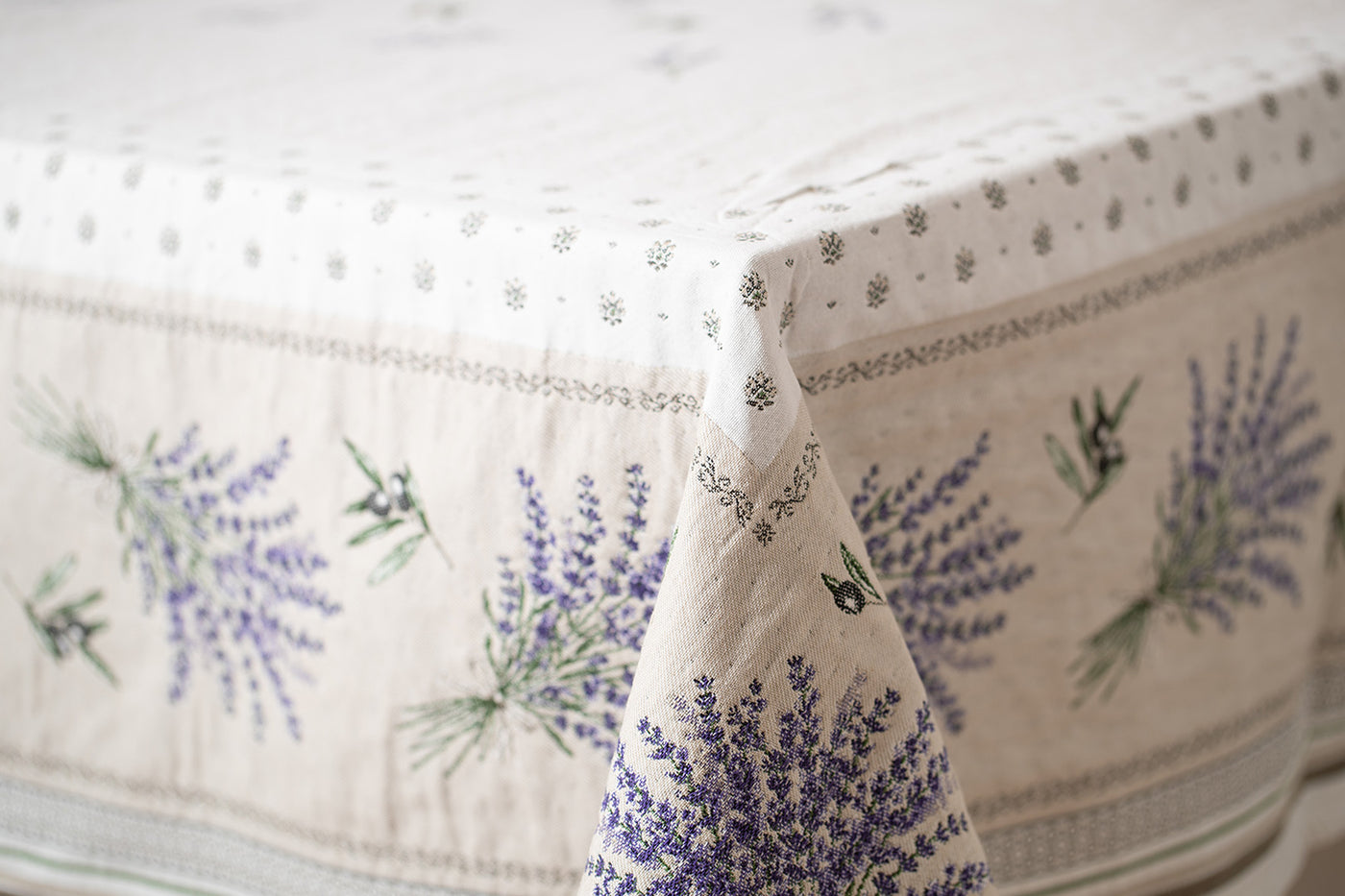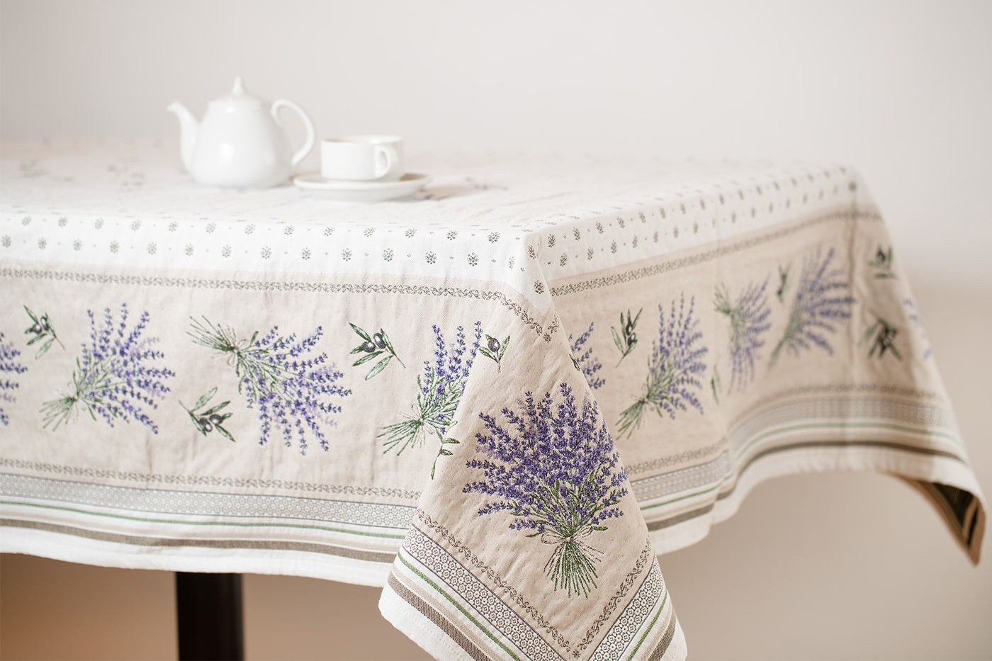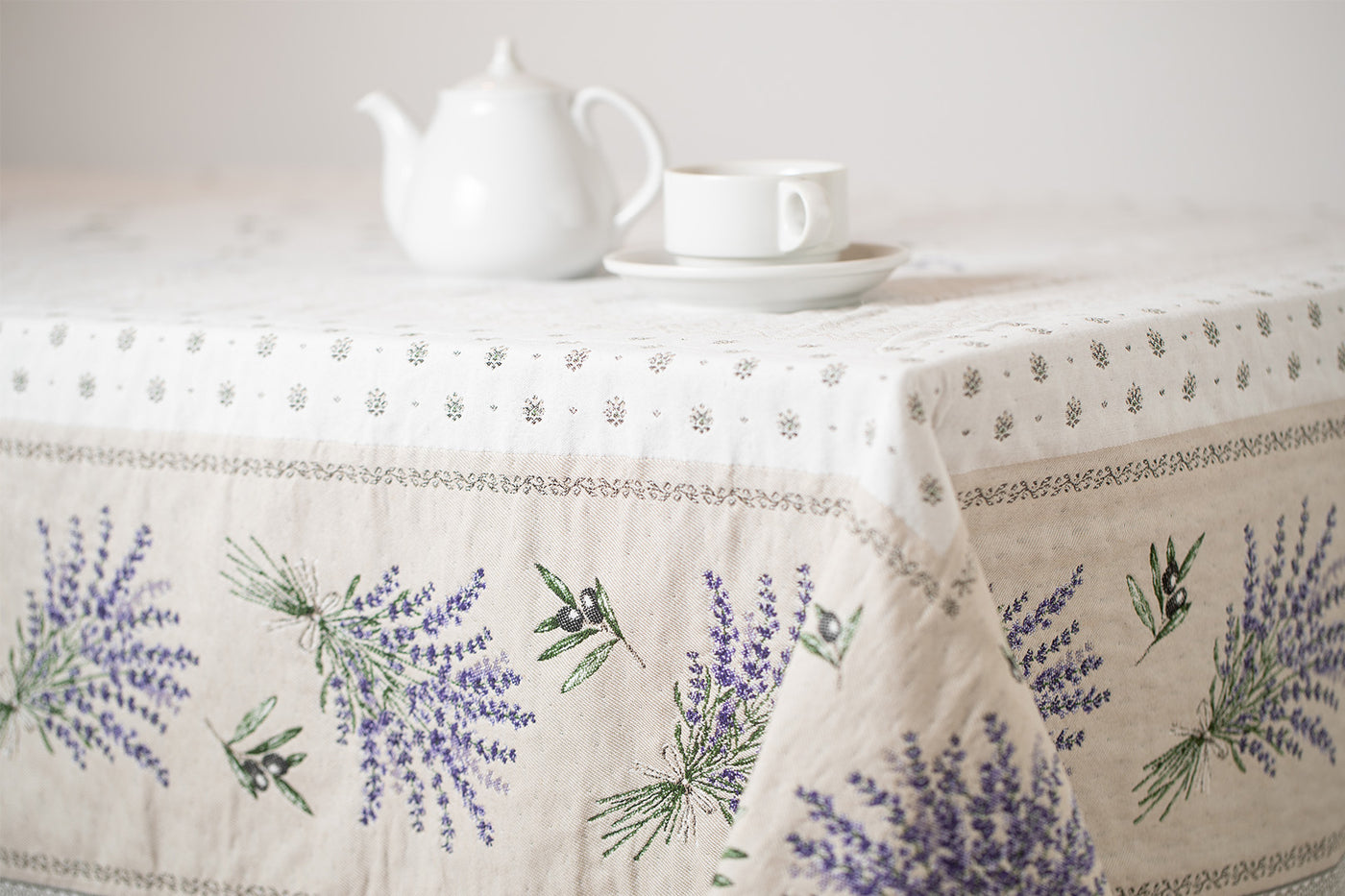 ラベンダーやオリーブ柄のナチュラルなテーブルクロス