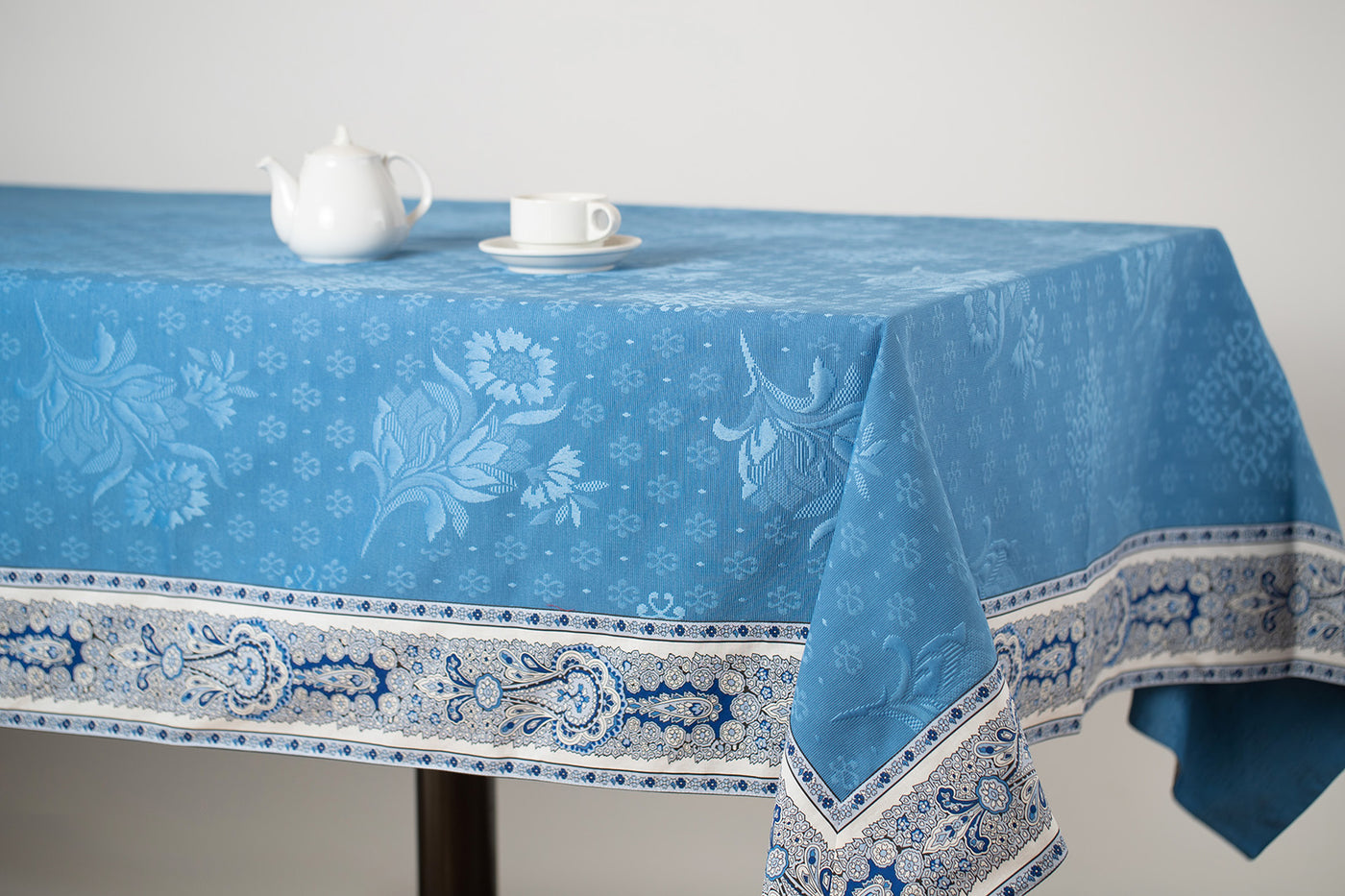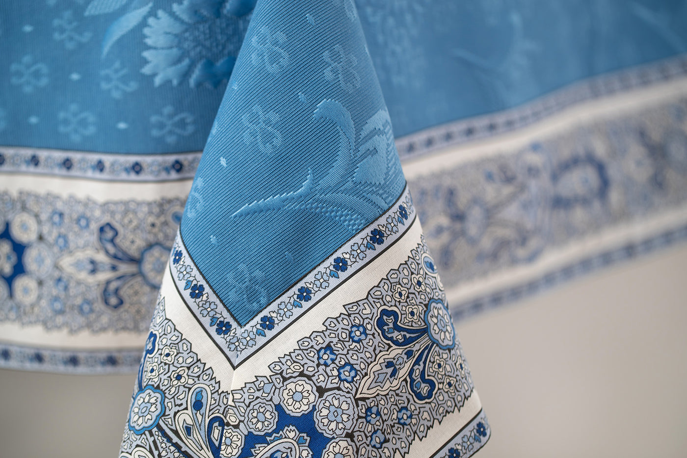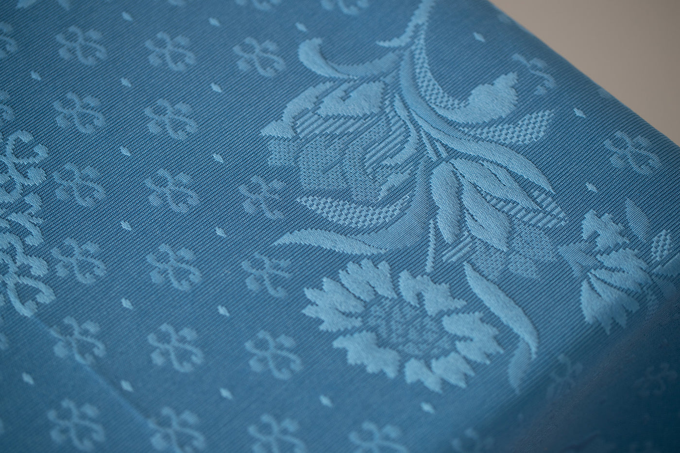 模様が立体的に織られており、やや光沢がある高級感漂うテーブルクロスです。