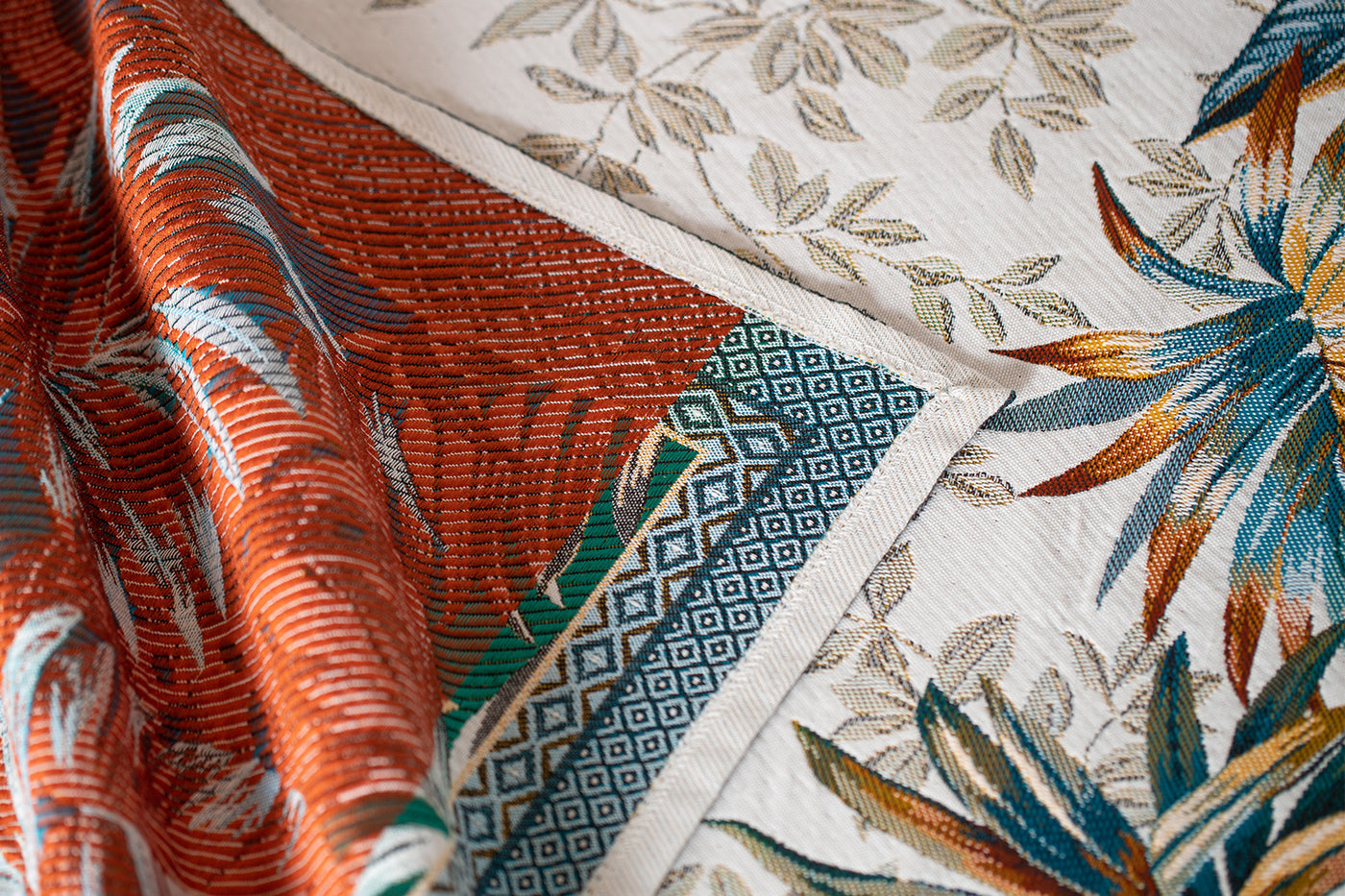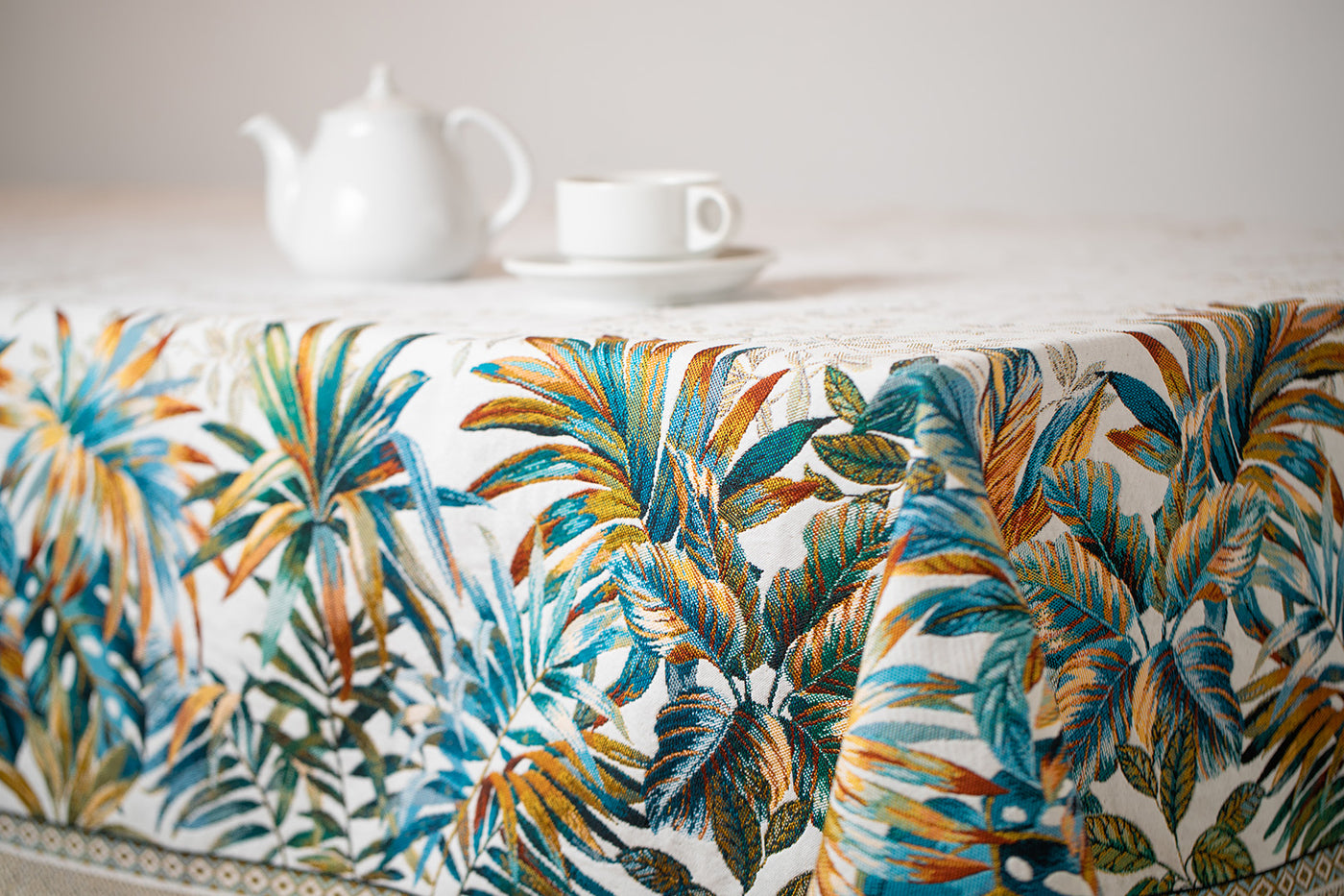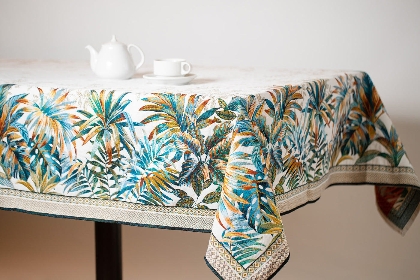 ジャカード織りの高級感のあるテーブルクロスは、リビングを華やかにし、ホームパーティーシーンをより一層素敵なテーブルコーディネートにしてくれます。